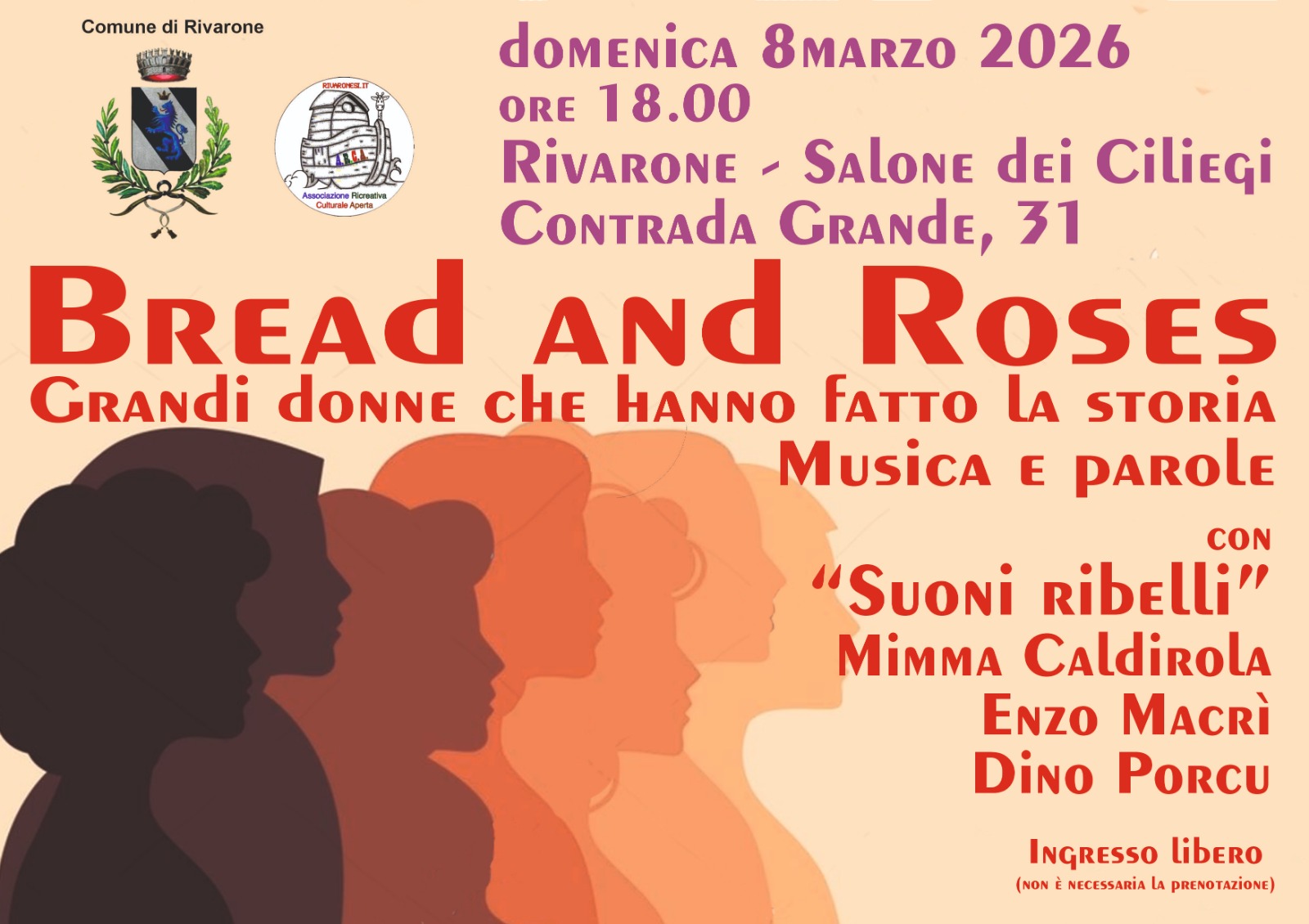Nuovo evento domenica 08 marzo alle ore 18:00 a Rivarone presso il Salone dei Ciliegi.